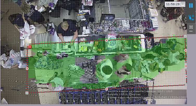 - В окне предварительного просмотра задать зону детектирования с помощью узловых точек (по аналогии с зонами игнорирования у детекторов анализа ситуации, см. Задание общих зон анализа ситуации).
