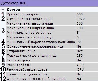 - Если необходимо использовать данный детектор для распознавания лиц в реальном времени, установить значение Да для соответствующего параметра (3, см. Настройка распознавания лиц в реальном времени).