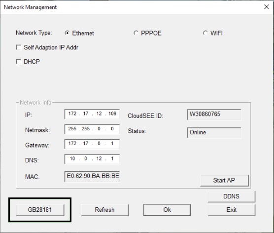 - В открывшемся окне Network Management нажать на кнопку GB28181.