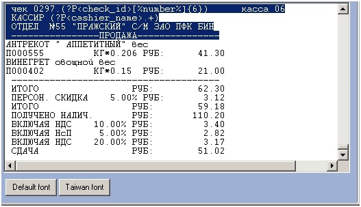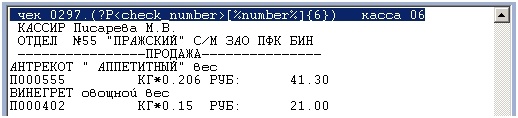 Выделенный на рисунке фрагмент есть шаблон заголовочной части чека.