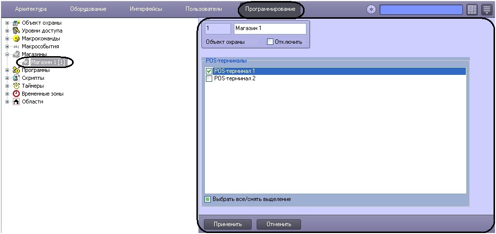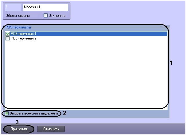 Для выбора всех POS-терминалов из списка установить флажок Выбрать все/снять выделение (2).