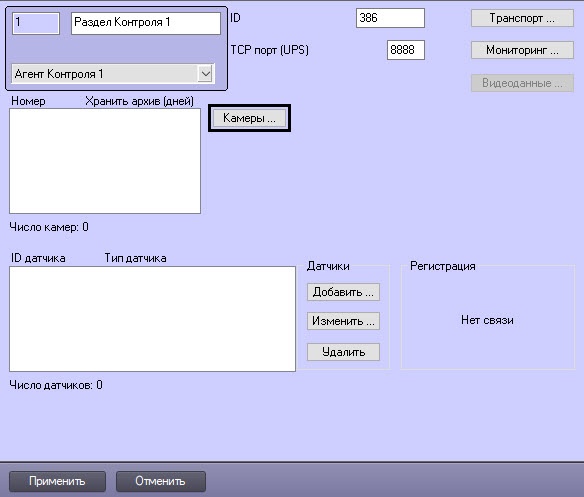 - Нажать на кнопку Камеры…. Будет открыто окно Добавление/редактирование камер.